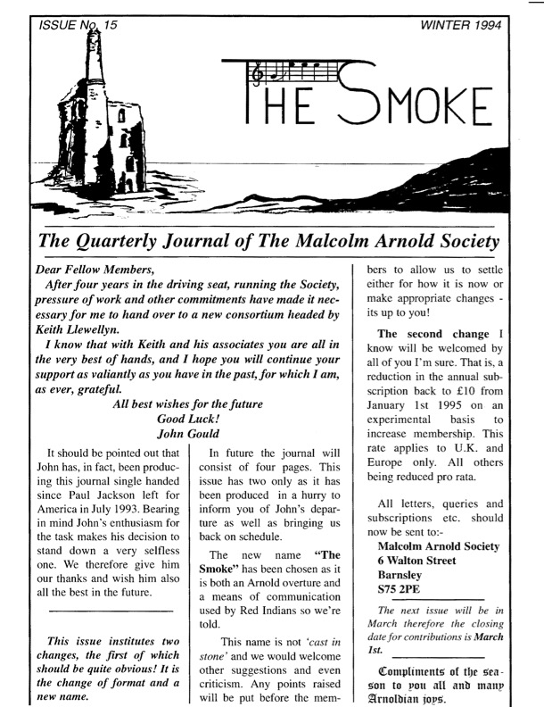 Issue 15 Winter 1994 (Newsletter renamed to The Smoke)